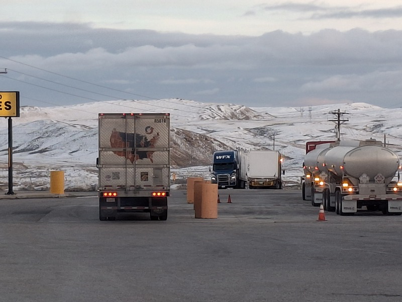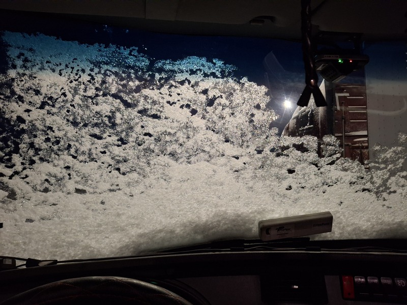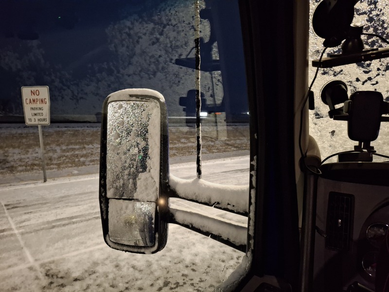 Which is to say that yesterday, I bought the truck. Today I am on my first trip out in it as an owner operator, currently parked just outside of Rawlins, Wyoming. It's a bit chilly tonight as you can see in the view from my front window.